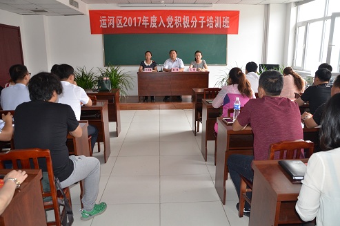 “七一”前,为进一步做好发展党员工作,确保新发展党员质量,6月13日,运河区举办2017年入党积极分子培训班。区委组织部常务副部长赵明出席开班仪式并讲话,区委非公有制经济组织和社会组织工作委员会专职副书记马倩参会。170余名入党积极分子参加此次培训。