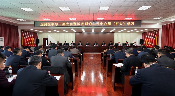 10月29日,运河区在区政府五楼会议室举行全区领导干部大会暨区委理论学习中心组(扩大)学习会议,区委书记高福纯出席会议并讲话。